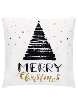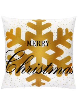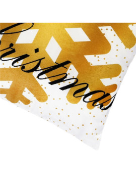 Fata de perna decorativa Merry Christmas, 40 x 40 cm, cu fermoar, poliester, alb / auriu