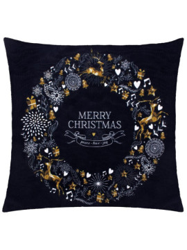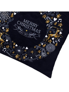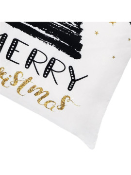 Fata de perna decorativa Merry Christmas, 40 x 40 cm, cu fermoar, poliester, negru