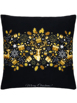 Fata de perna decorativa, model reni si cadouri, 40 x 40 cm, cu fermoar, poliester, negru