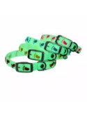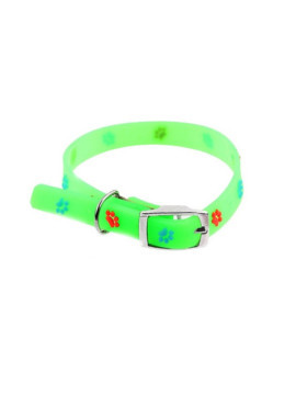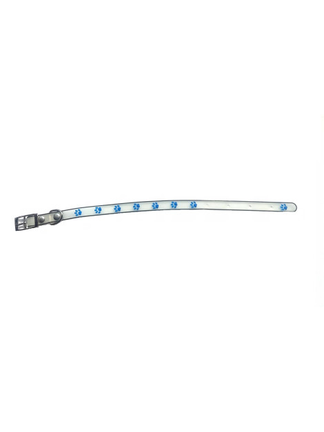 Zgarda fosforescenta pentru caini si pisici, 27 cm, silicon si metal, albastru/transparent